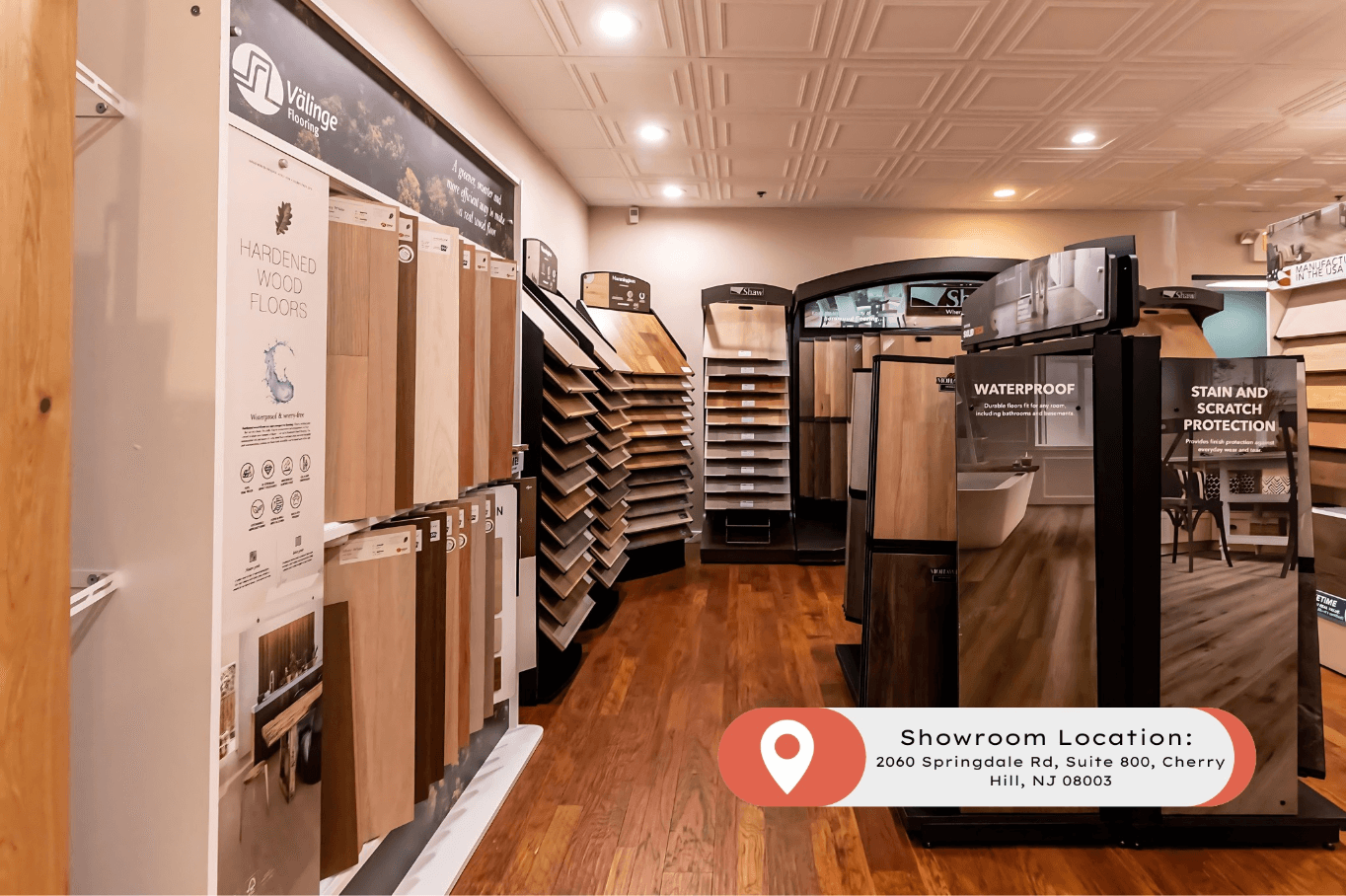 Our Cherry Hill showroom is designed to help customers explore flooring options in person and make confident selections. In addition to our showroom, we maintain a warehouse to store flooring orders and deliver materials on demand to installation sites as needed.
