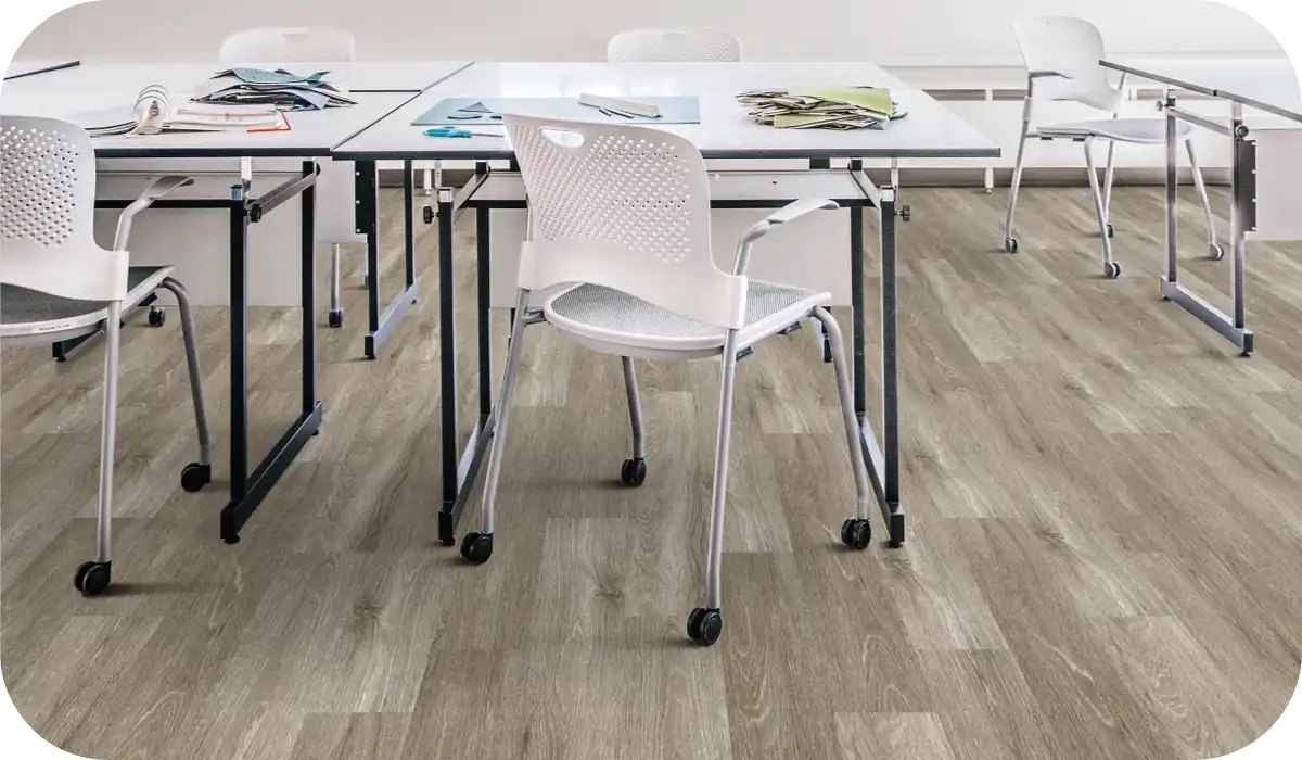 Hard surface flooring delivers long-term performance in high-traffic environments. From luxury vinyl to tile and other resilient options, these solutions offer strength, stability, and clean, refined design suitable for demanding commercial use.