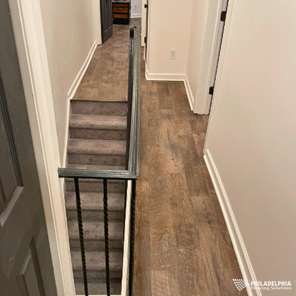 Browse our LVP flooring projects featuring waterproof, scratch-resistant solutions that are perfect for kitchens, bathrooms, and high-traffic areas. With a wide range of looks from wood to stone, our luxury vinyl options offer both beauty and practicality.